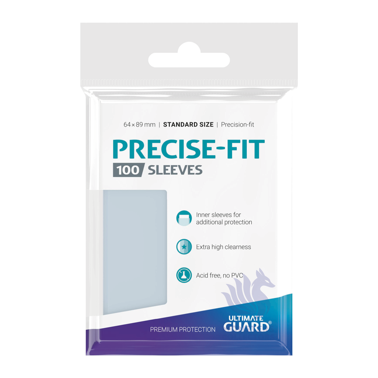 Paquete de 100 fundas Precise Fit para cartas de Ultimate Guard. Protege tu colección y llévala al siguiente nivel.