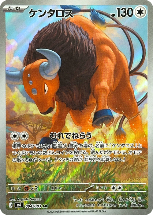 Carta Pokémon Tauros AR. Número 94 m4 de la expansión Ninja Spinner en idioma Japonés. Perfecta para coleccionistas y jugadores del TCG.