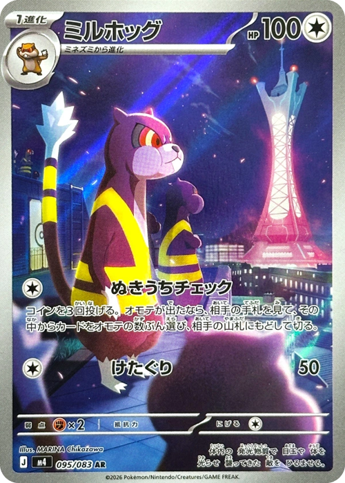 Carta Pokémon Watchog AR. Número 95 m4 de la expansión Ninja Spinner en idioma Japonés. Perfecta para coleccionistas y jugadores del TCG.