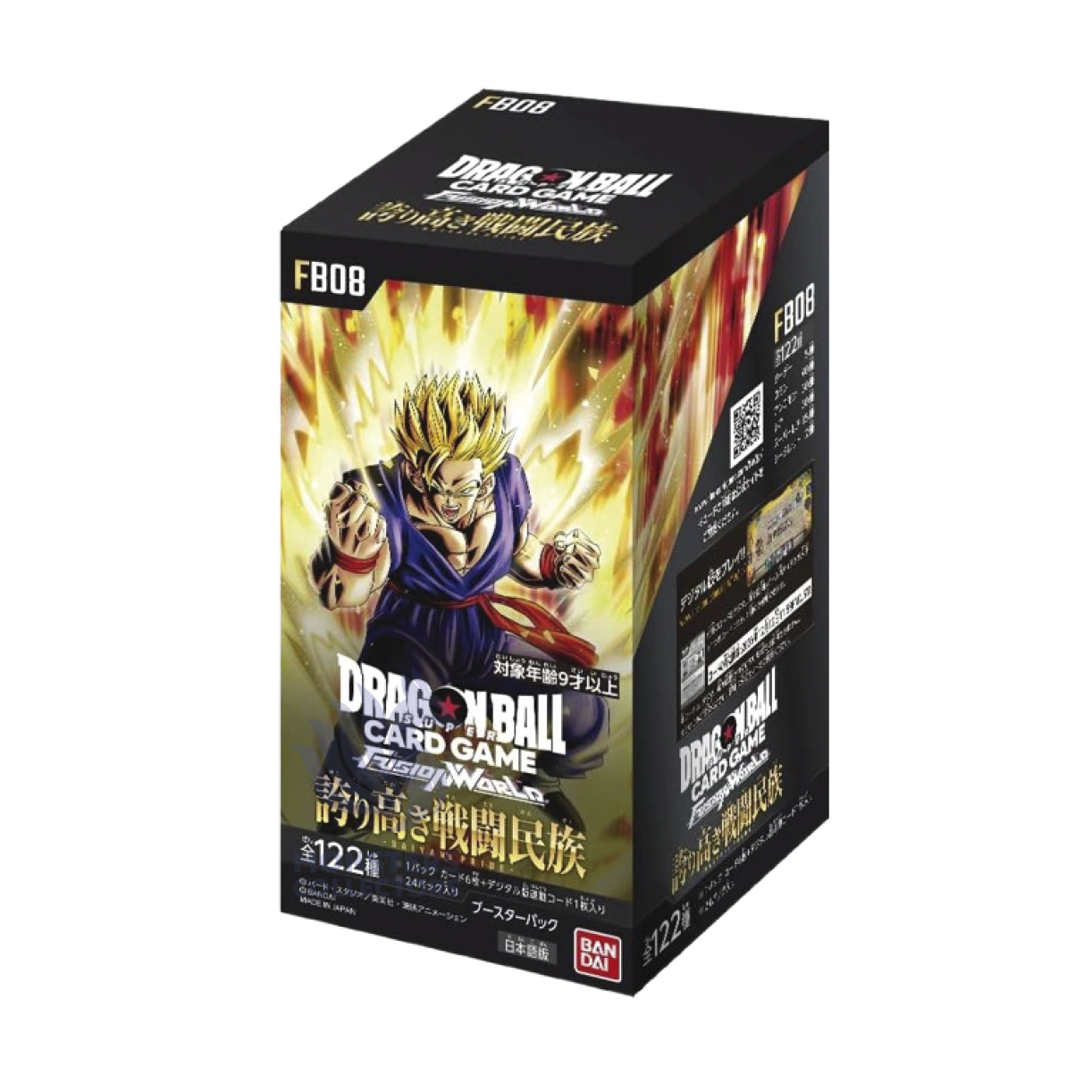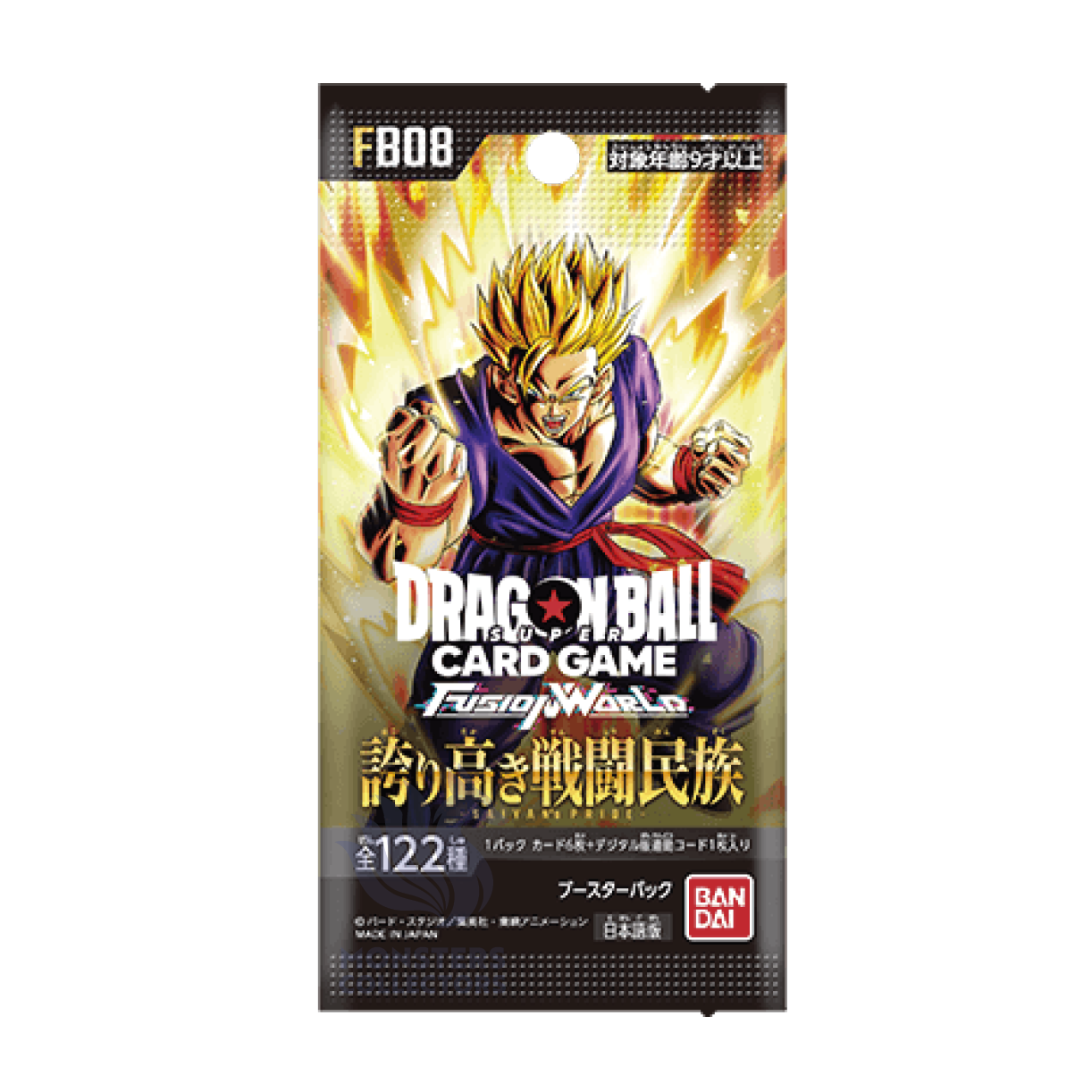 Caja de 24 sobres de Dragon Ball Fusion World Saiyan’s Pride FB08 Japonés. Rompe los límites del poder y despierta la batalla definitiva.