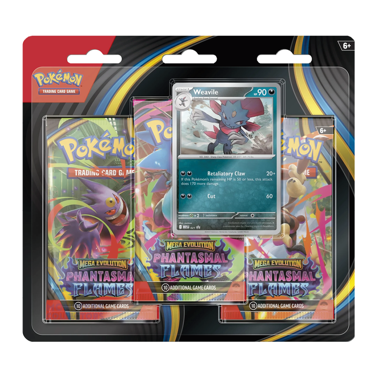 Blister de 3 sobres de Weavile de Pokémon Fuegos Fantasmales en Español. Descubre las llamas infernales de mega charizard X y desata el poder de la megaevolución.