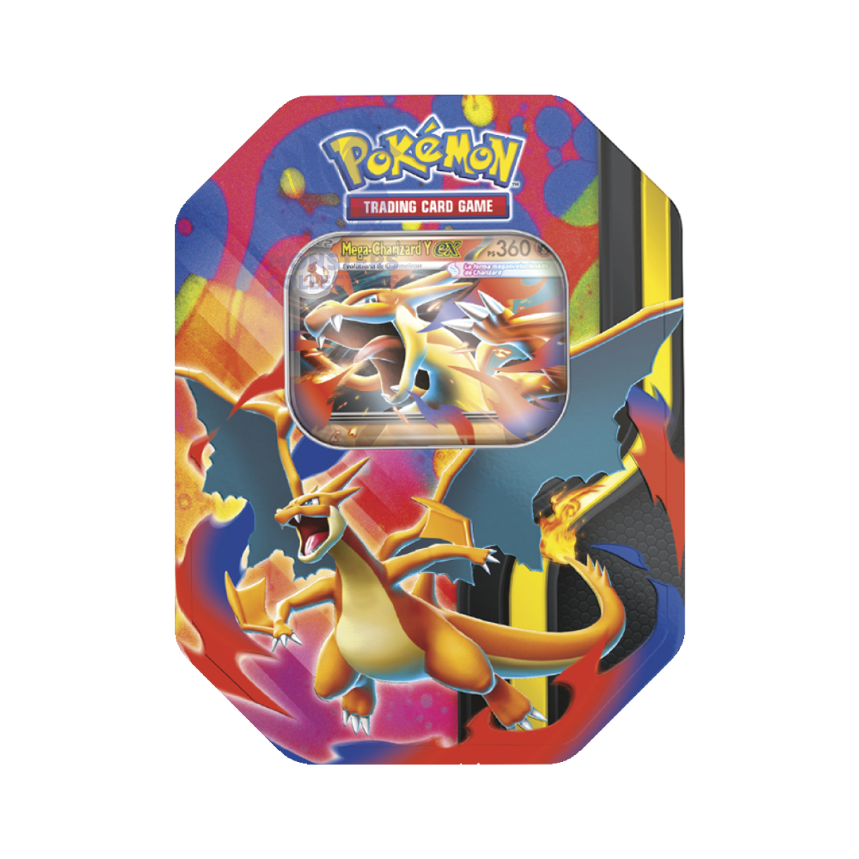 Lata Pokémon Mega Charizard Y de la colección Fuegos Fantasmales en Español.