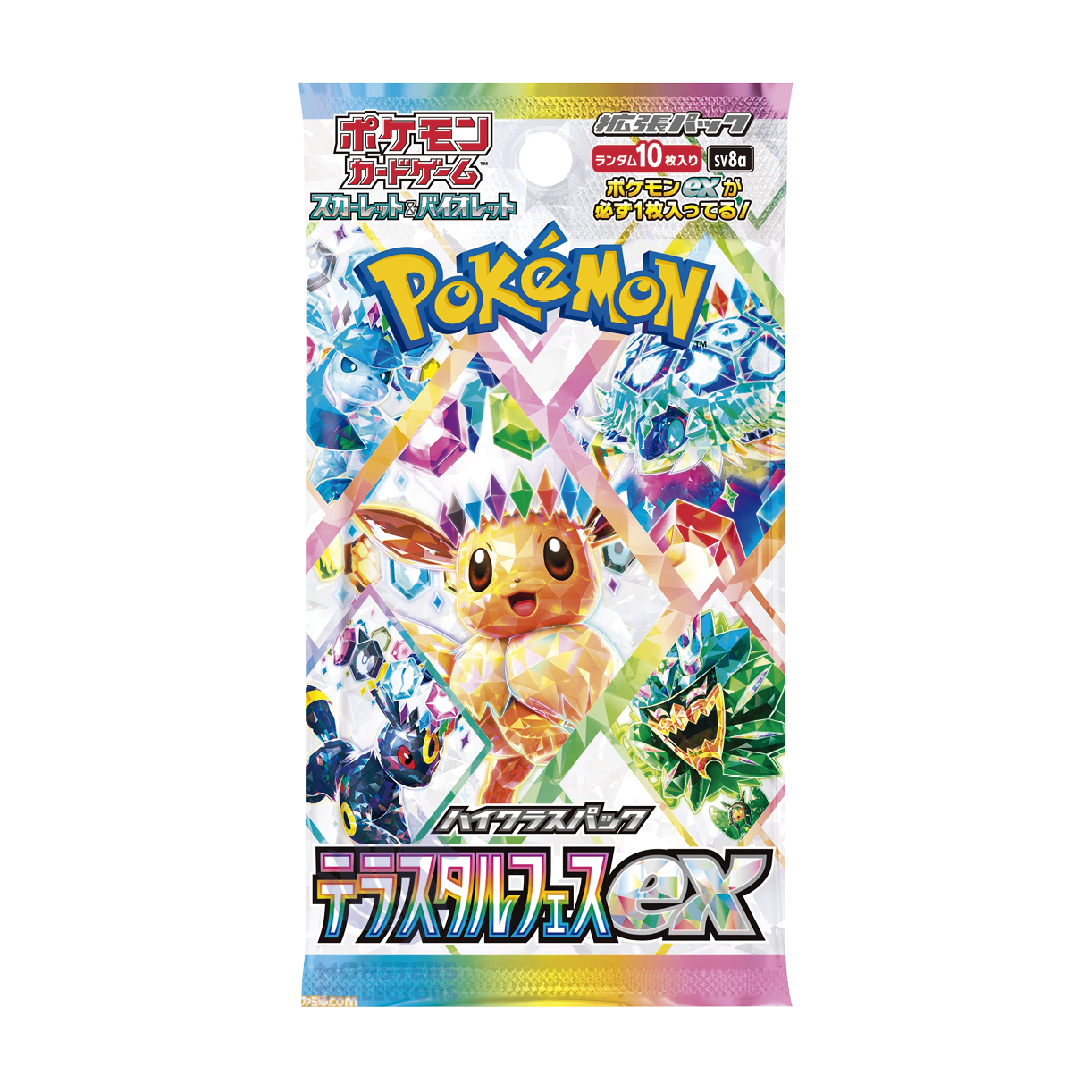 Sobre de Pokémon Terastal Festival en japonés. Descubre a umbreon y el resto de eeveelutions en sus formas teracristalizadas.